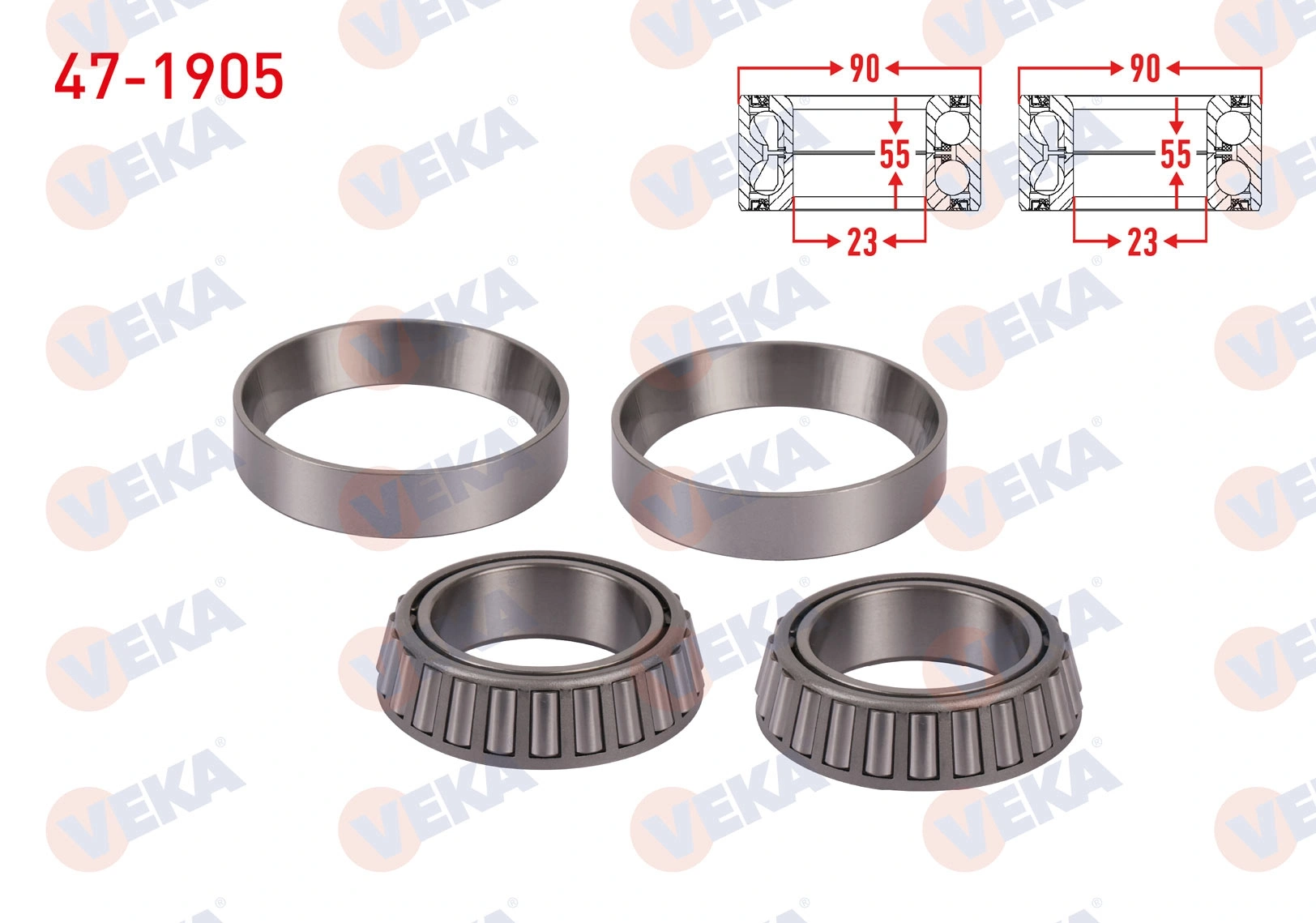 ARKA TEKERLEK RULMANI IKILI SOL-SAG 55X90X23 FORD TRANSIT (V184) 2000-2006 / TRANSIT (V347) 2006-2014