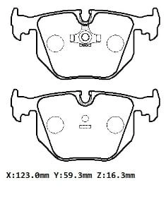 BMW 3 SERI- E46- SD/COUPE- 98/01; ARKA FREN BALATASI (KABLOSUZ) (DİSK) (123X59,3X16,3) (BRAMAX)