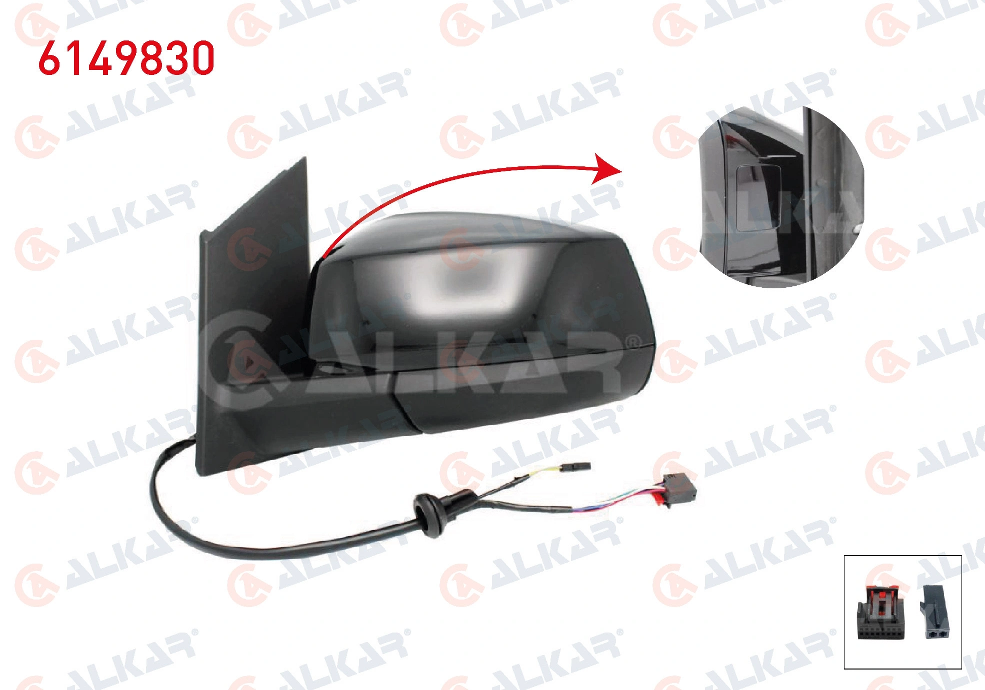 DIS DIKIZ AYNASI SOL ELEKTRIKLI ISITMALI OTOMATIK KATLANIR KOR NOKTALI PARLAK SIYAH 7+2 PIN FORD TOURNEO CONNECT 2022- / VOLKSWAGEN CADDY V 2020-