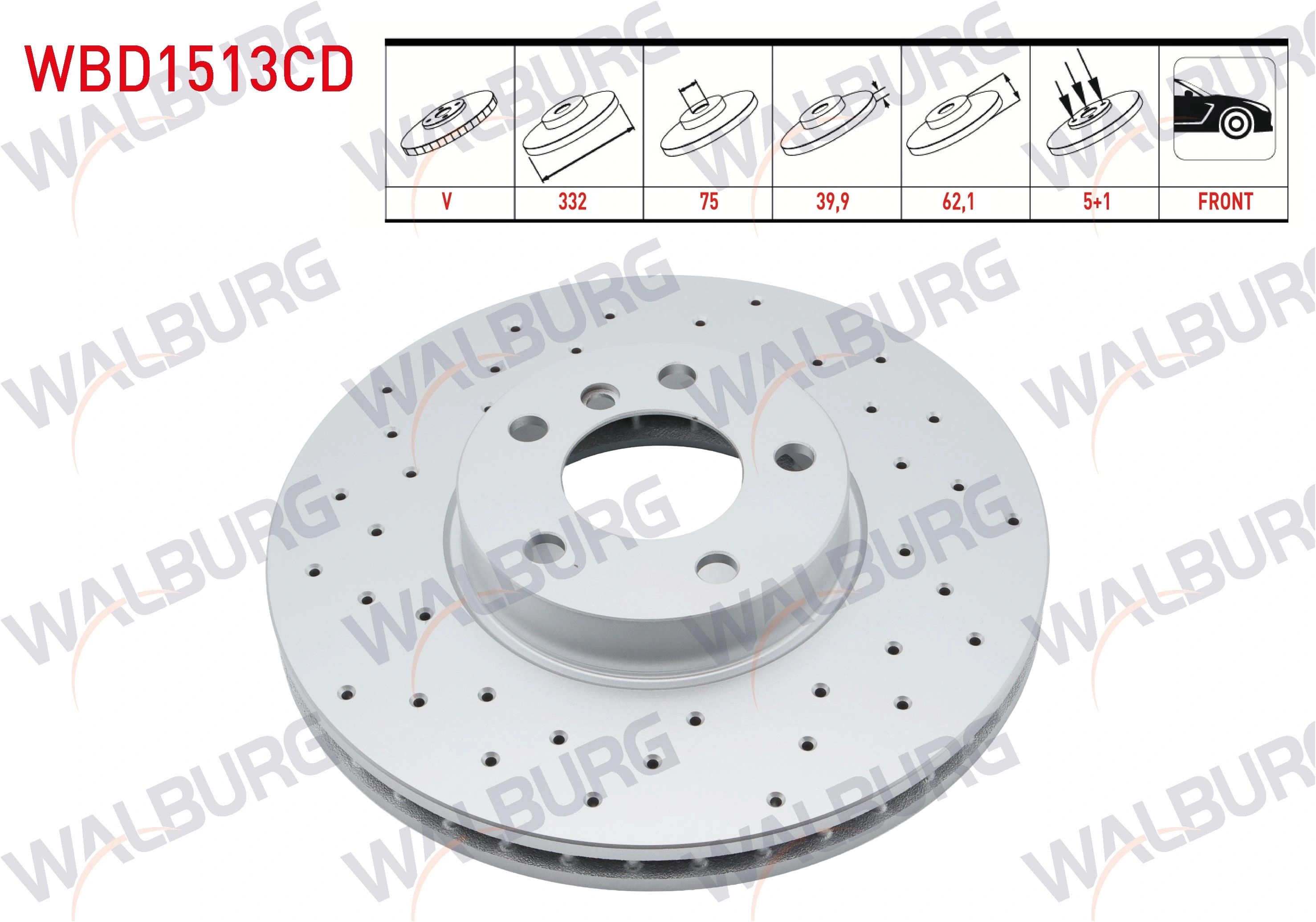 FREN DISKI ON HAVALI KAPLAMALI PERFORMANS DELIKLI BMW X5 (E70) 3.0 D 5 BJN 332X29,9X75X62,1 2007-2012