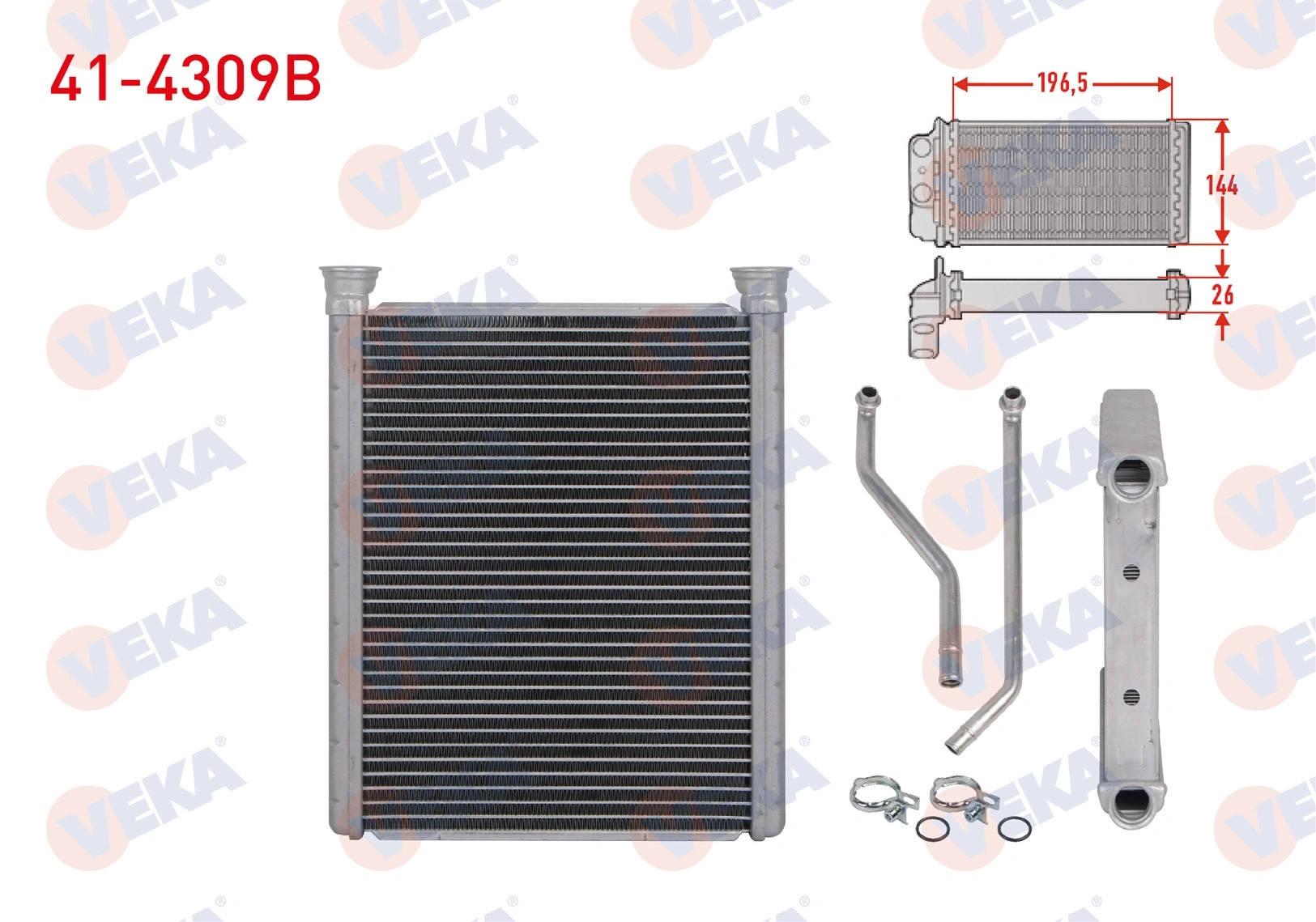 KALORIFER RADYATORU BRAZING (4mm fin) TOYOTA YARIS (P9) 1.3 VVT-I - 1.33 VVT-I - 1.4 D-4D 2006-2010 41-4309B (A1)