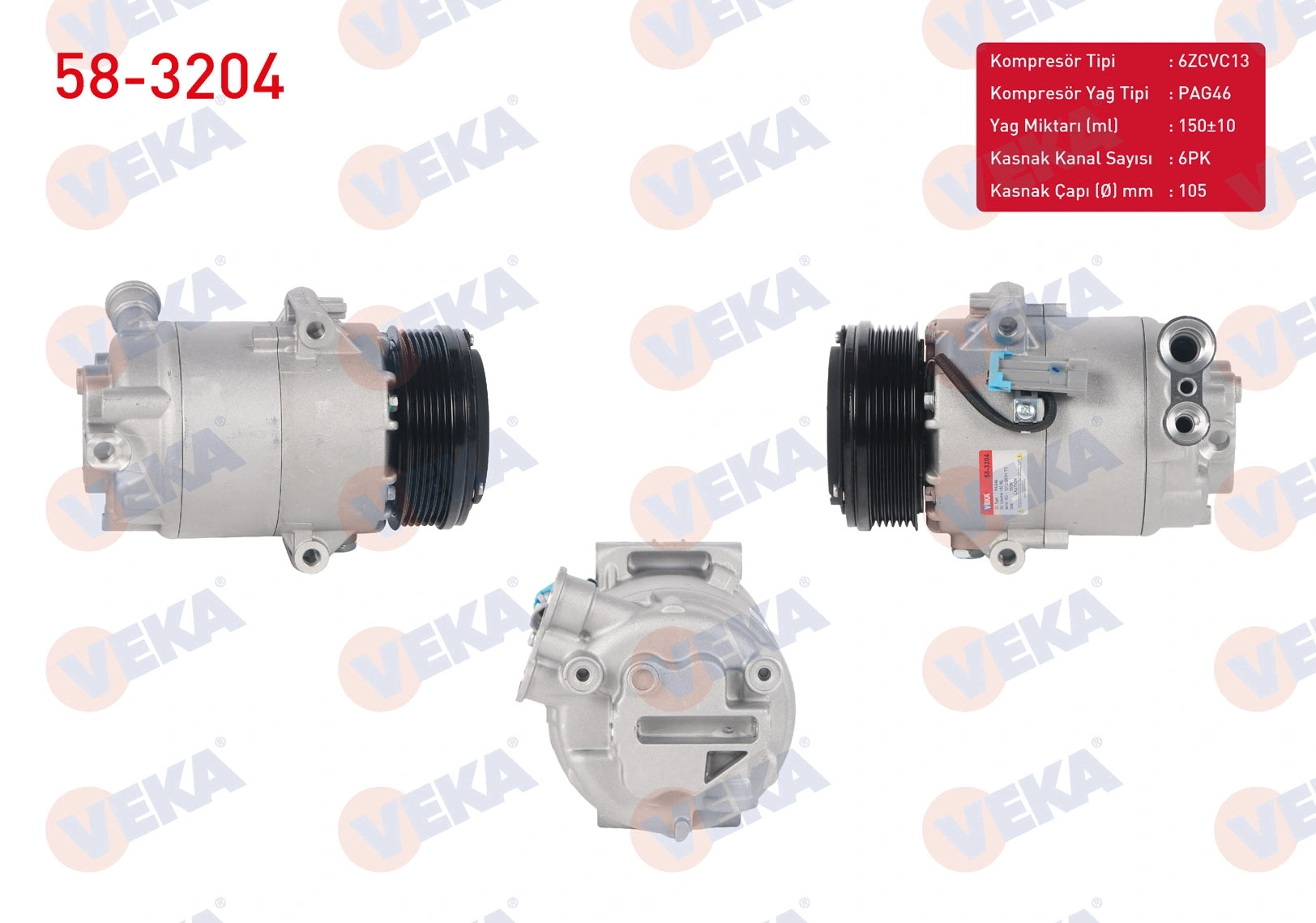 KLIMA KOMPRESORU 6PK 105mm OPEL ASTRA H 1.3 CDTI 2004-2010