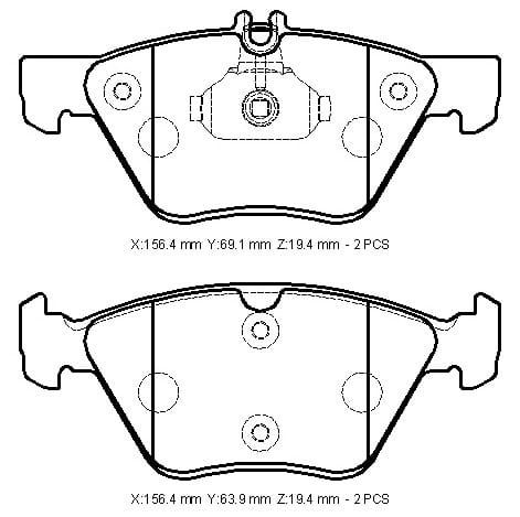 MERCEDES E CLASS- W210- 00/02; ÖN FREN BALATASI KABLOSUZ)DİSK(156,4X69,1X19,4/156,4X63,9X19,4)BR