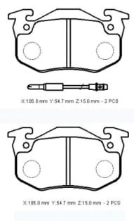 RENAULT TWINGO- 01/02; ÖN FREN BALATASI (2 KABLOLU)(DİSK)(105X54,7X15) (BRAMAX)