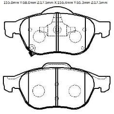TOYOTA AVENSIS- 01/02; ÖN FREN BALATASI 1,6/1,8/2,0 (DİSK) (155X71,1X17,5/15;6,4X68,4X17,5) (DAIWA)